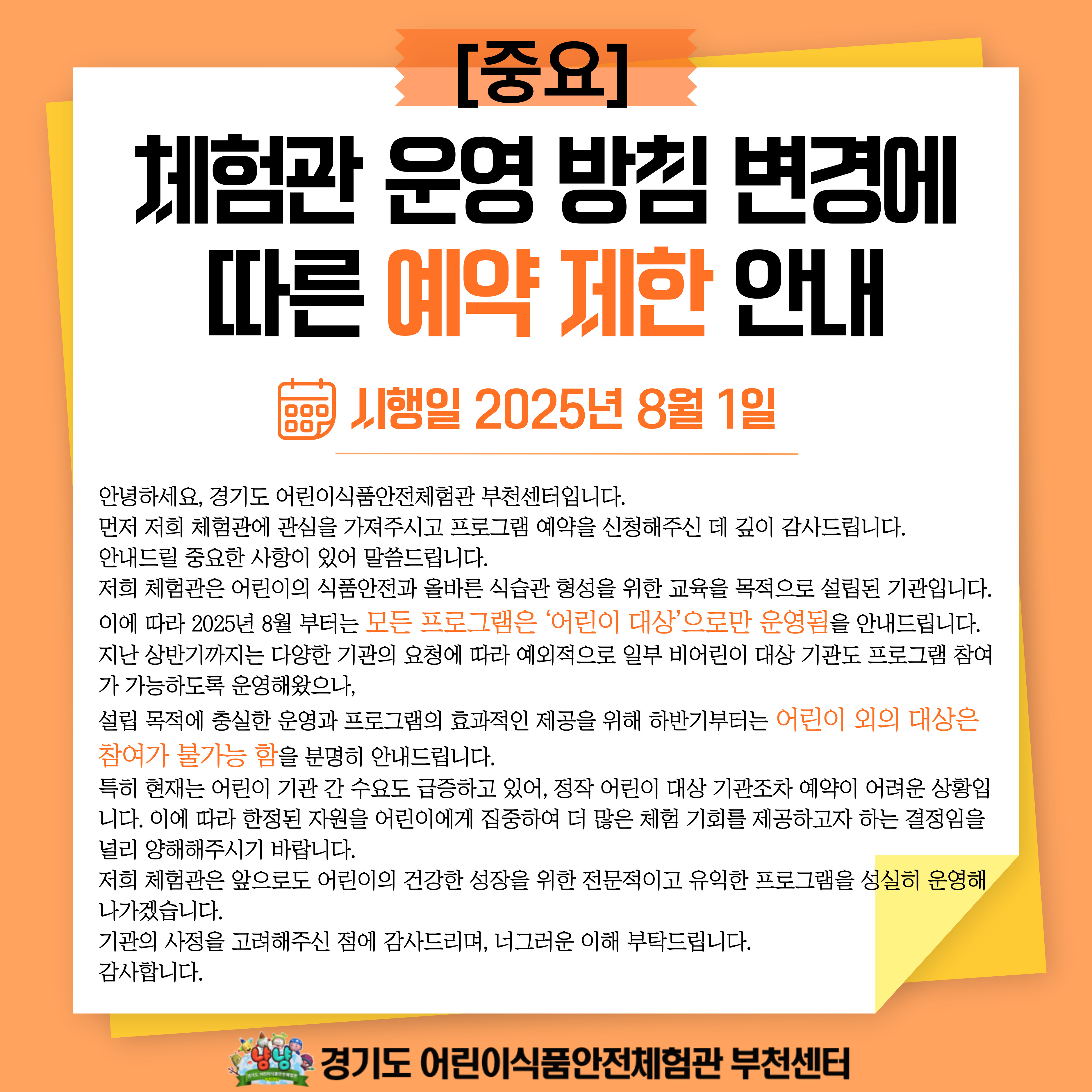 ★중요★ 체험관 운영 방침 변경에 따른 예약 제한 안내
